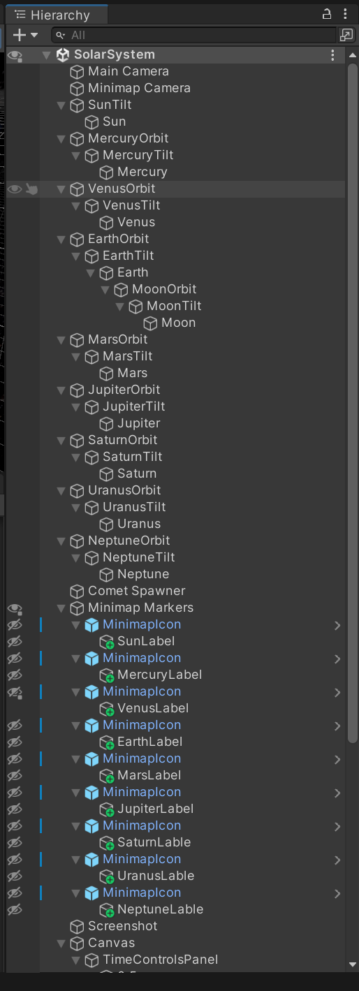 This project is a simplified interactive model of the solar system created in Unity.